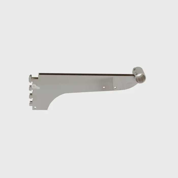 A 12" double bracket with tube that can be used for medium-to-heavy weight (1/16"- 3/32") universal hangrail slotted standards with½" slots on 1" centers.